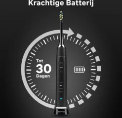 40.000 VPM Slimme tandenborstel – schoonheid, hersens en kracht. De Black-serie is een moderne elektrische tandenborstel van wereldklasse, boordevol met de modernste technologie. Hij beschikt over een ultra-krachtige en toonaangevende motor die 40000 trillingen per minuut produceert, een lithium-ion batterij, supersnel draadloos opladen, 4 standen, slimme vibratietimers, 8 door DuPont ontworpen borstelkoppen en borstelharen, en een op maat gemaakte reisetui; dit alles met een slank, lichtgewicht en IPX7 waterproof ontwerp.