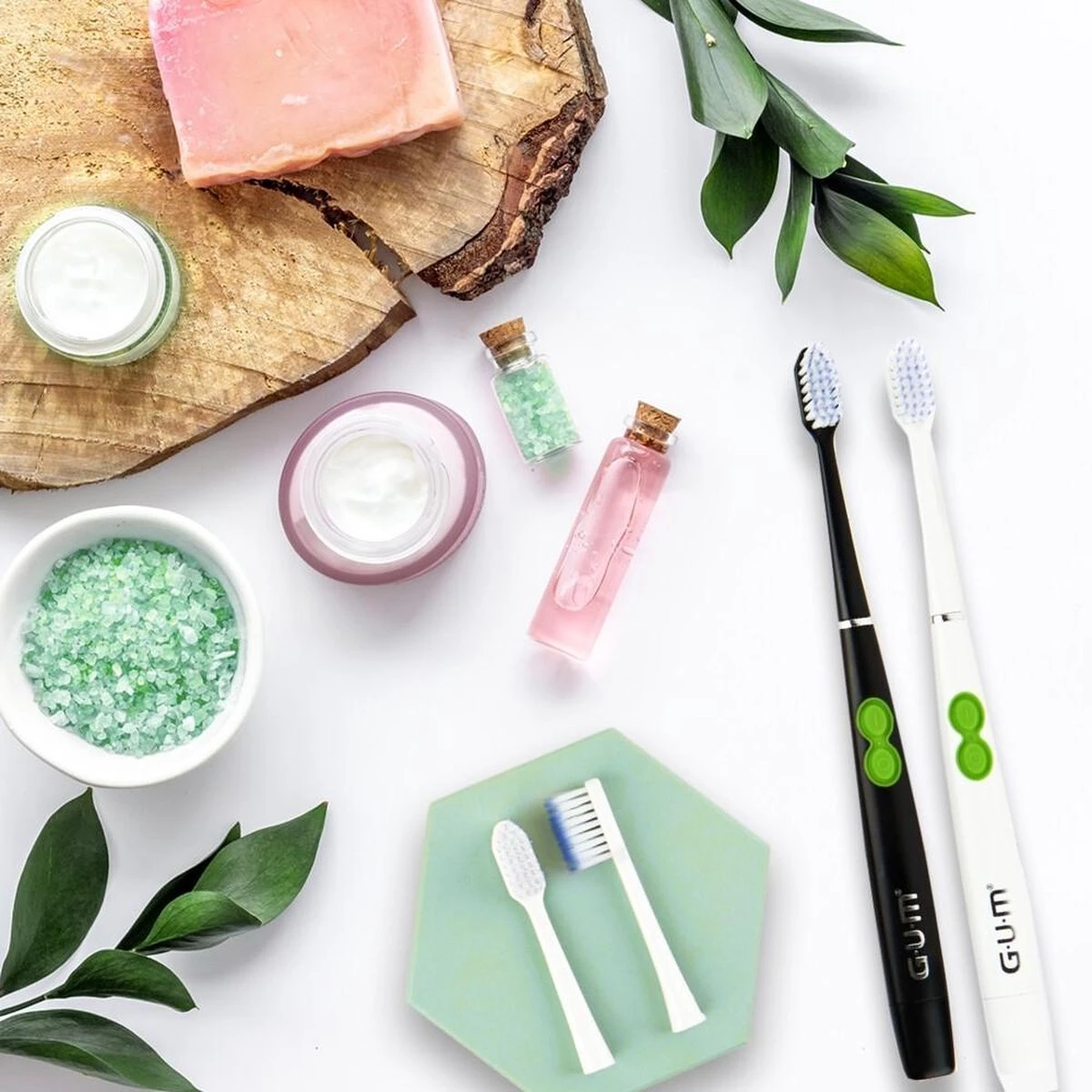 De GUM ActiVital Elektrische tandenborstel is een sonische tandenbostel die op batterijen werkt. Deze tandenborstel maakt door middel van 12.000 bewegingen per minuut op milde wijze de tanden en kiezen schoon. De trilkracht zorgt voor een betere reiniging dan een normale handtandenborstel. De borstelharen zijn taps toelopend en zijn daar door 50% effectiever in het bereiken van de ruimtes tussen de tanden en kiezen. Er word dieper onder de tandvleesrand gereinigd en het tandvlees word gestimuleerd.