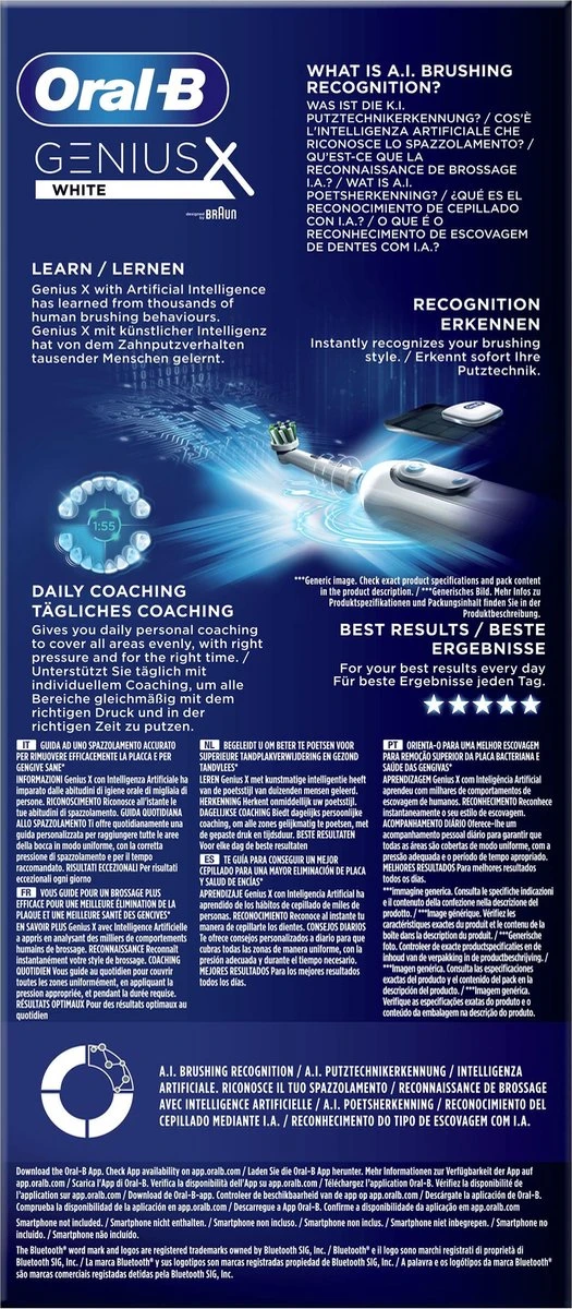- Meer dan 82% van de mensen die de Oral-B Genius X gebruikten, had na 6-8 weken een merkbare verbetering van de mondgezondheid