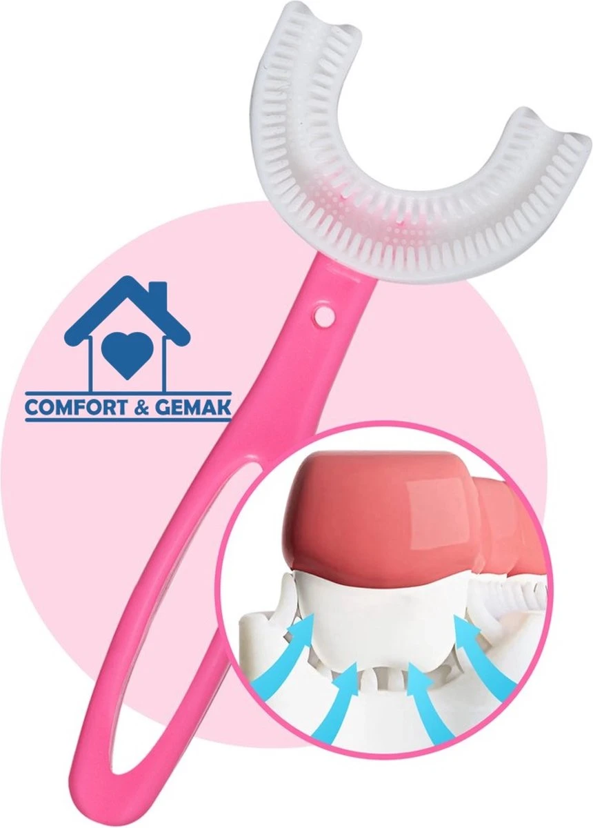 Gemakkelijk de tanden poetsen van uw kind? Met deze tandenborstel kunt u de tanden en het tandvlees van uw kind goed en hygiënisch reinigen. Met deze speciale borstel worden de tanden in mond 360 graden gepoetst. Geen strijd meer met uw kind over het tandenpoetsen. Wel schone en gezonde tanden en gezond tandvlees voor uw kind.