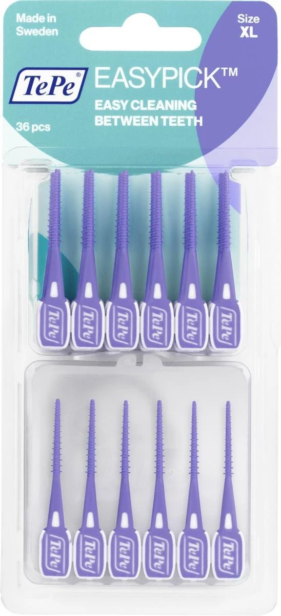 TePe EasyPick is de volgende generatie tandenstokers, conisch gevormd met nu drie overlappende maten. Dagelijks gebruik houdt het tandvlees, tanden en kiezen gezond en fris. TePe EasyPick™ is een eenvoudige en efficiënte manier om tussen de tanden te reinigen. De unieke combinatie van de materialen maakt de TePe EasyPick™ flexibel, duurzaam en comfortabel in gebruik. TePe EasyPick XL is specifiek bedoeld voor grotere interdentale ruimtes.