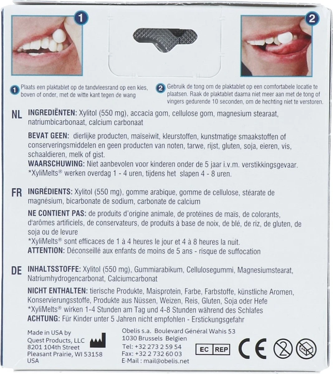 Xylimelts plakken stevig aan het tandvlees en kunnen daarom ook veilig worden gebruikt tijdens de slaap wanneer er het minste speeksel in de mond aanwezig is. Bovendien zijn ze ook zeer geschikt voor mensen met een kunstgebit.