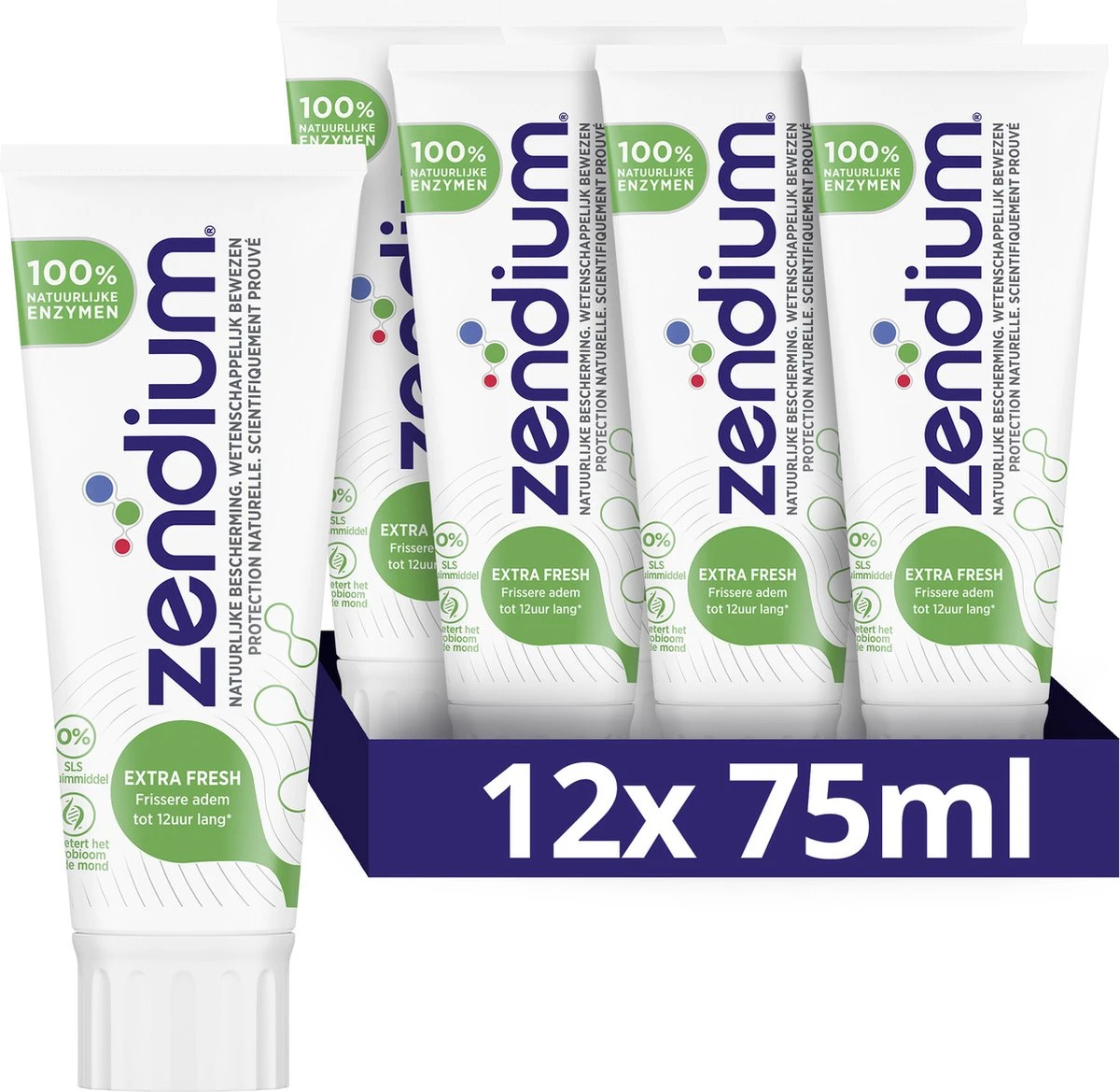 Zendium, natuurlijke bescherming, wetenschappelijk bewezen. Zendium Extra Fresh Tandpasta bevat 100% natuurlijke enzymen die de goede bacteriën in de mond bevorderen en daarmee de mond op natuurlijke wijze beschermt. Voor sterke tanden, gezond tandvlees en een frisse adem.